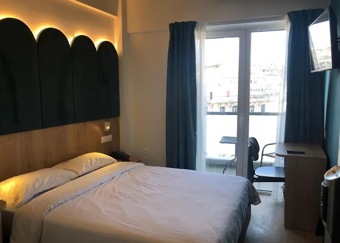 Vårt välutrustade och stora rum hade balkong, fantastisk utsikt och snygg design. Hotellet hade ett perfekt läge, precis bredvid Judiska museet i Thessaloniki.